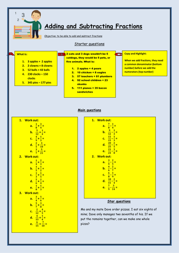 You can choose like or unlike fractions, make missing number problems, restrict the problems to use proper fractions or to not to simplify the answers. Your students will use these sheets to practice adding and subtracting simple fractions. If you are a maths teacher, you are.
