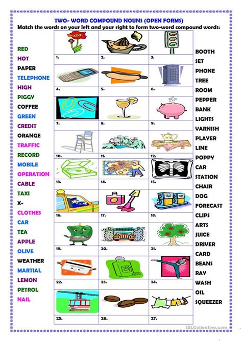 Two-word compound words (open forms) worksheet - Free ESL ...