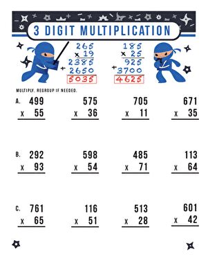 3-Digit by 2-Digit Multiplication | Worksheet | Education.com