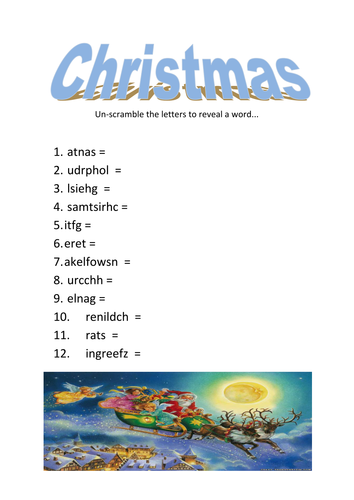 Scrambled Christmas Words. Our Christmas Word Scramble is a new variation on an old favorite. This Christmas word scramble game is made up of fifteen mixed-up holiday words just waiting to be put in proper order - race the clock or each other to see who can unscramble the most words the fastest!