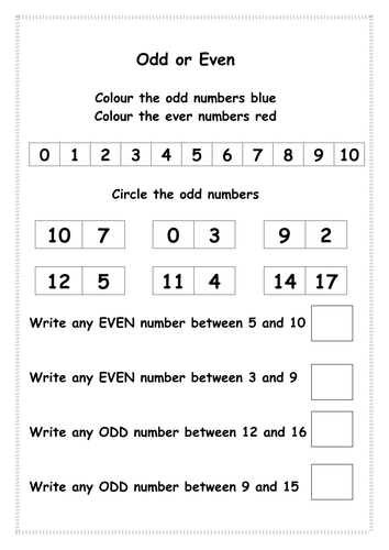 Free Odd and Even Numbers Worksheets | edHelper.com