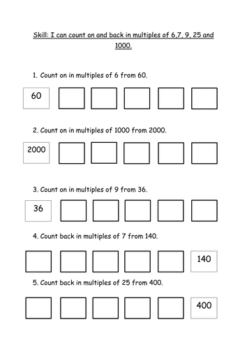 Counting on in multiples of 6,7,9,25 and 1000. by ...