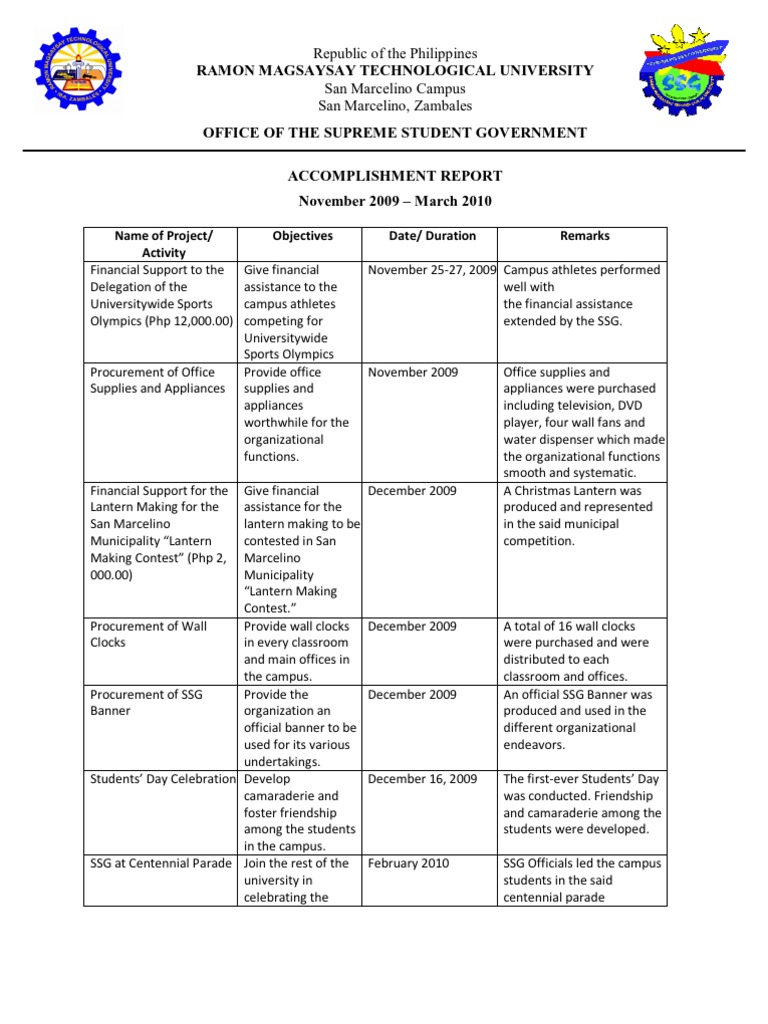 SSG Accomplishment Report | Business