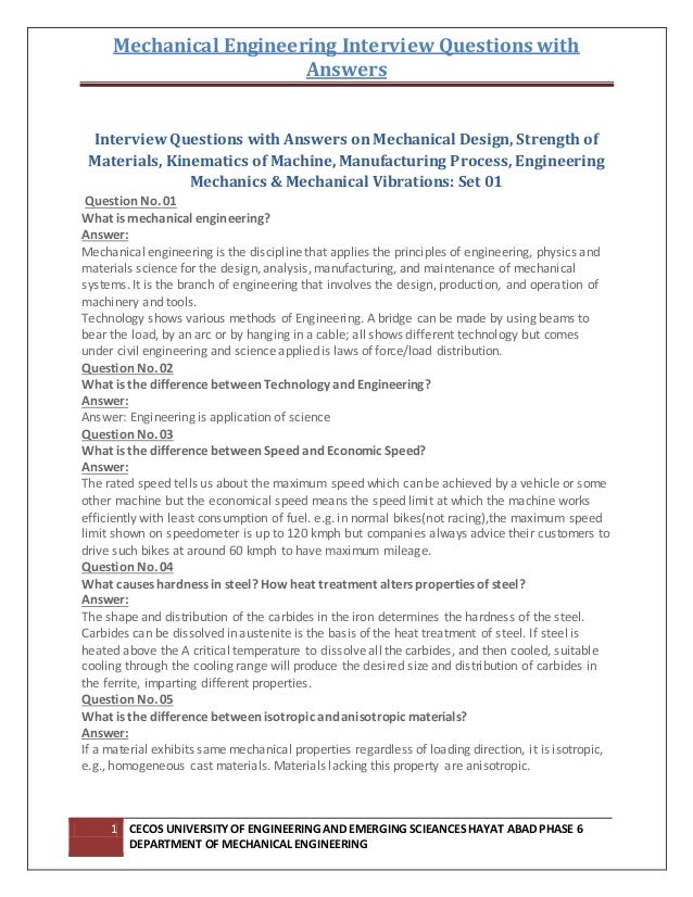 Mechanical Engineer Interview Questions and Answers - YouTube